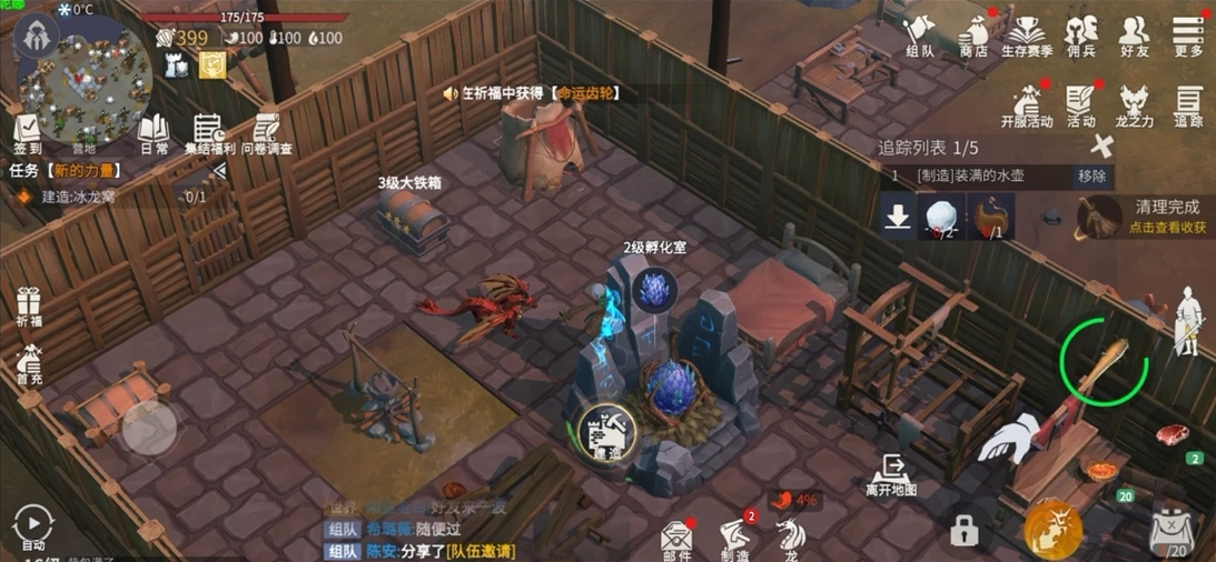 要让你的巨龙在冰原守卫者的世界里成为值得信赖的强力战斗伙伴,基础培养是第一步。龙和角色一样有等级设定,都需要通过击杀敌人来获得经验并升级。龙升级后可以直接提升其攻击力,因此在刷任何副本时都记得带上它,这不仅是多了一个帮手,也是让它持续成长的唯一途径。龙并非永动机,它和人一样会饥饿。当饥饿值归零,龙会自动飞走去觅食,想要它一直陪伴战斗,就必须用食物将其喂饱。养龙需要大量食物,前期可以将肉类储存起来制作成烤肉备用。龙的饱食度清空后,它会自行外出觅食,大约6小时后返回。当角色等级达到25级以后,龙的作用会越发关键,那时储备的烤肉就能派上大用场。